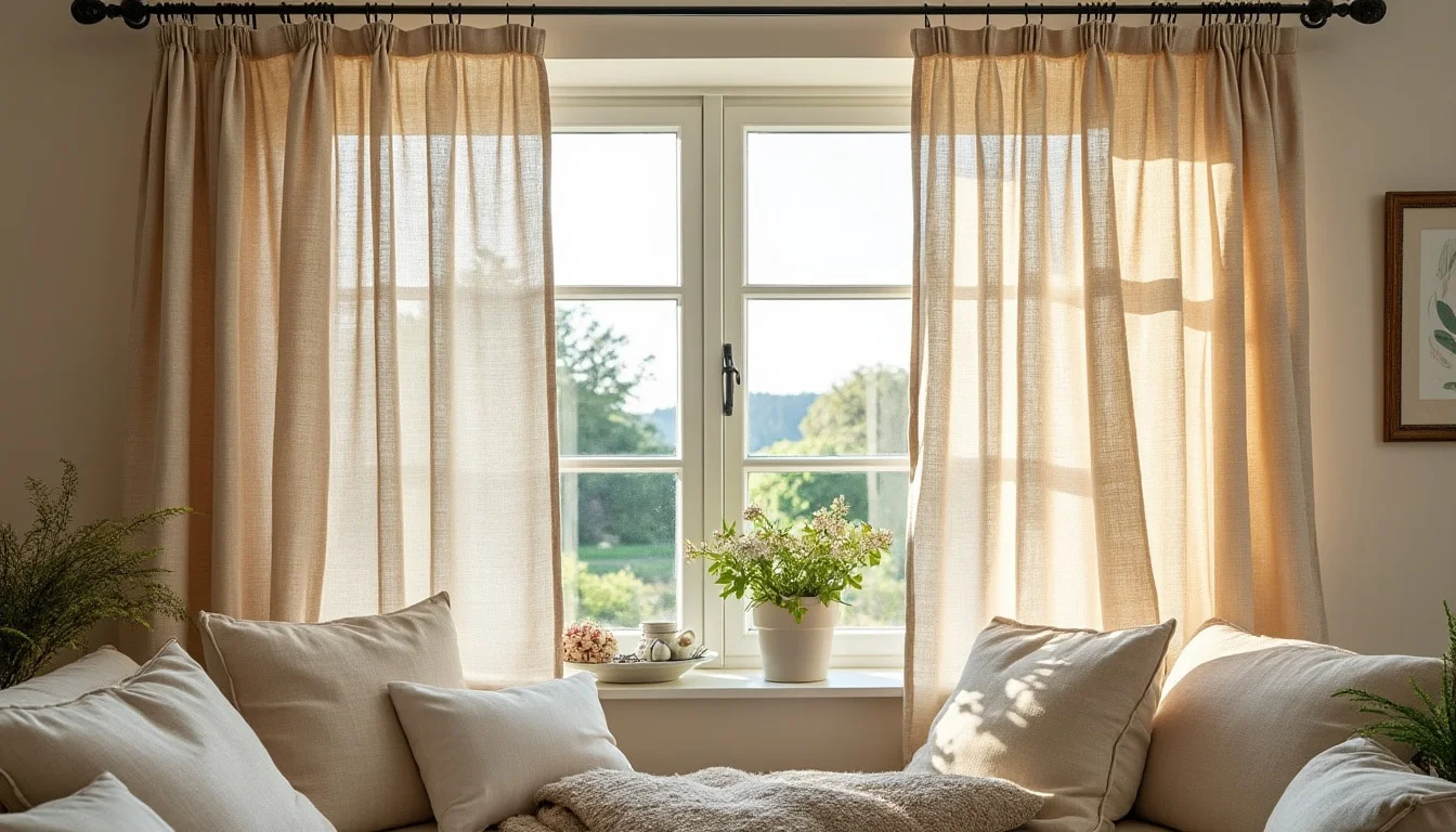 Il faut aussi éviter de trop charger visuellement la fenêtre. Deux rideaux suffisent largement ; ajouter des embrasses trop massives peut alourdir l’ensemble.