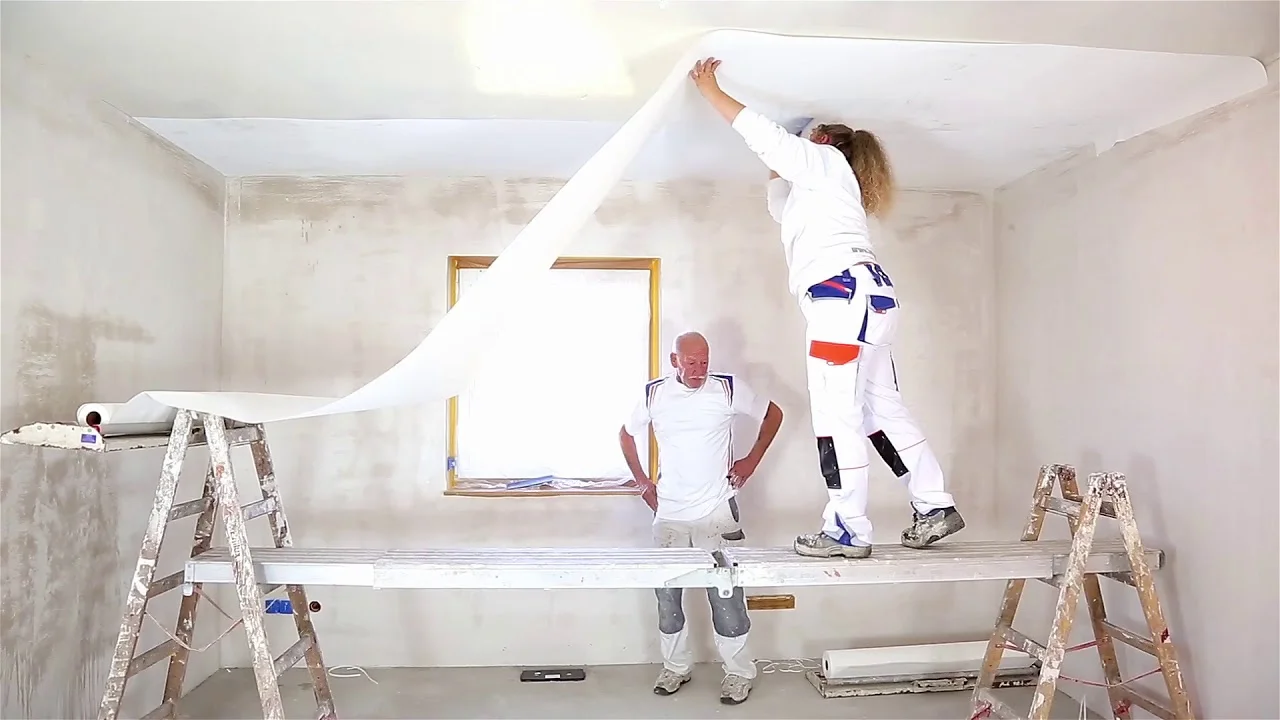 Si vous envisagez de poser toile de verre au plafond tout seul, prévoyez :