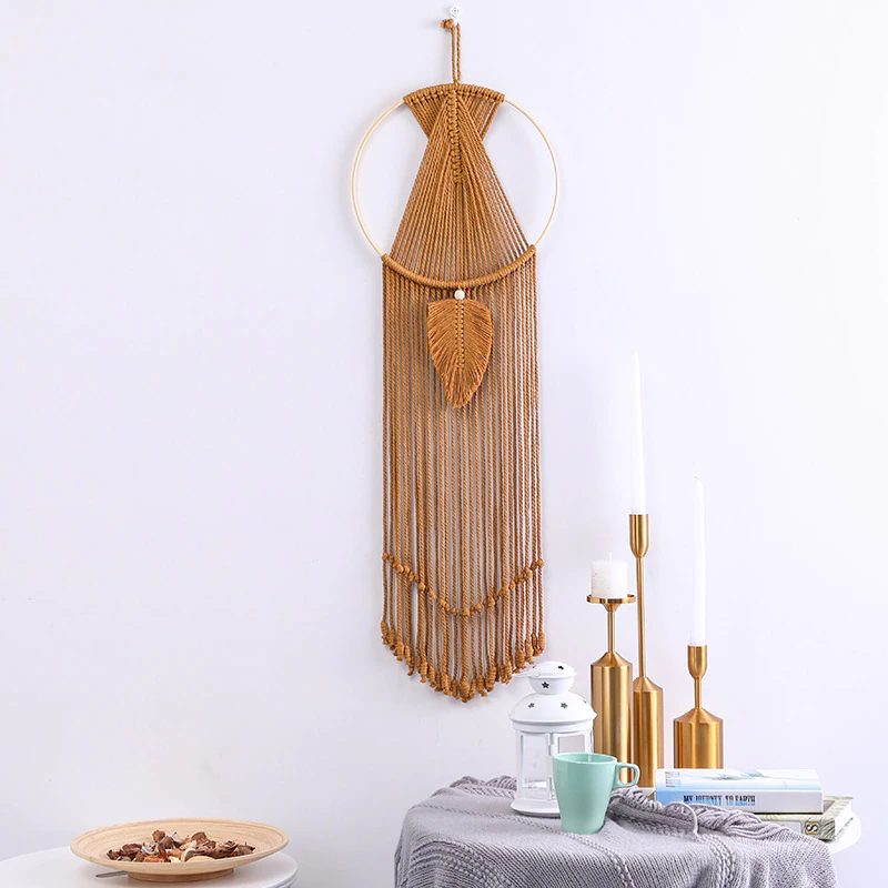 Ajoutez une touche bohème et apaisante à votre intérieur avec ce capteur de rêve en macramé au design raffiné. Son tissage symétrique, agrémenté d’une délicate plume ornée d’une perle en bois, en fait un véritable objet de décoration entre artisanat traditionnel et modernité. Suspendu dans une chambre, un salon ou même une entrée, il captivera les regards tout en diffusant une atmosphère douce et poétique.