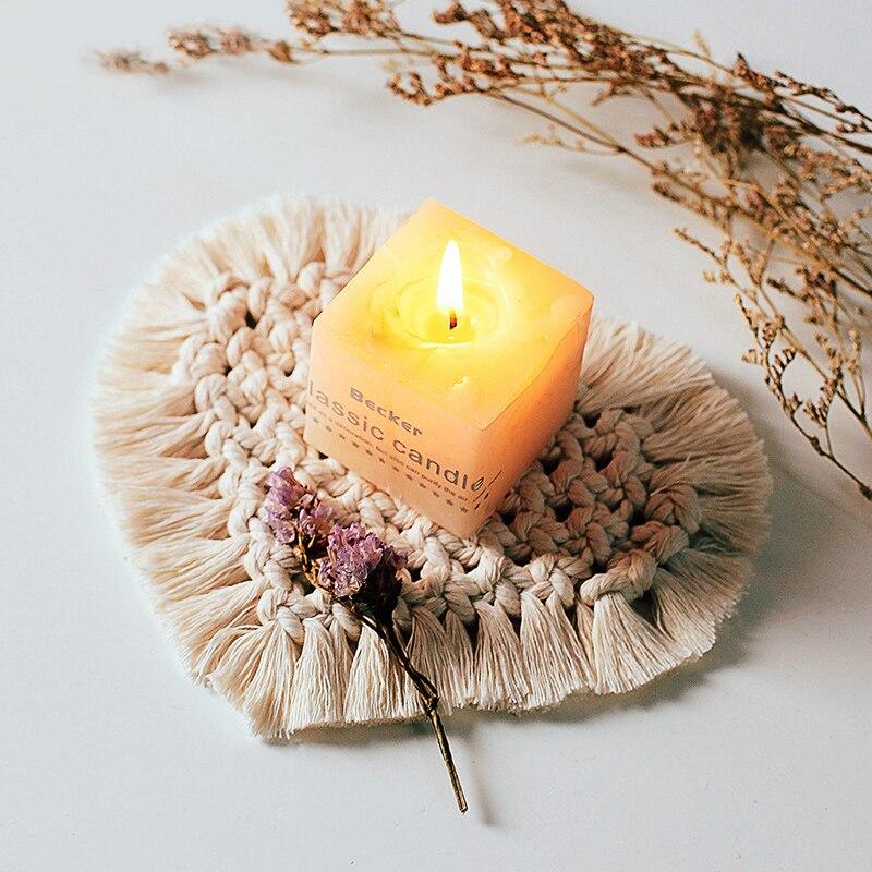 Craquez pour un dessous de verre en macramé fait à la main en forme de cœur en coton