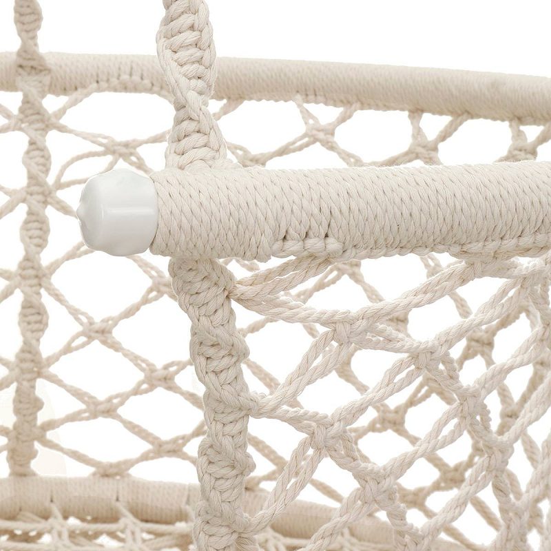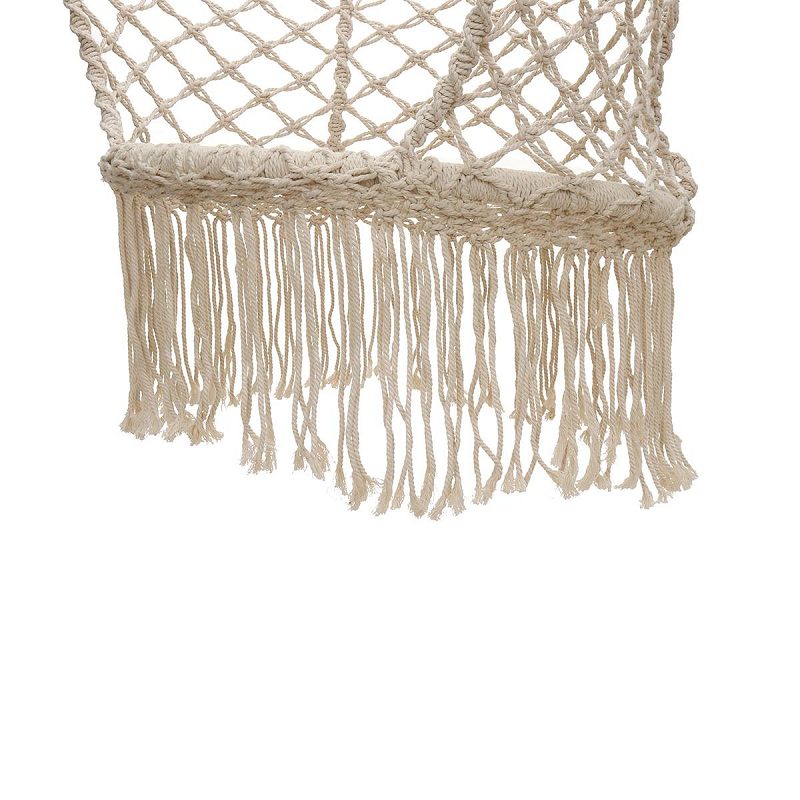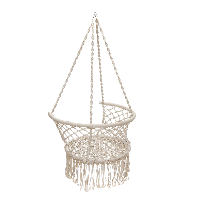 Confectionné avec un tissage soigné, ce fauteuil suspendu en macramé apporte du caractère à votre décoration intérieure ou extérieure. Son design aérien et ses pompons délicats ajoutent une touche d’élégance à n’importe quel espace. Installez-le dans votre salon, votre chambre ou même sous une pergola pour un coin cosy et apaisant.