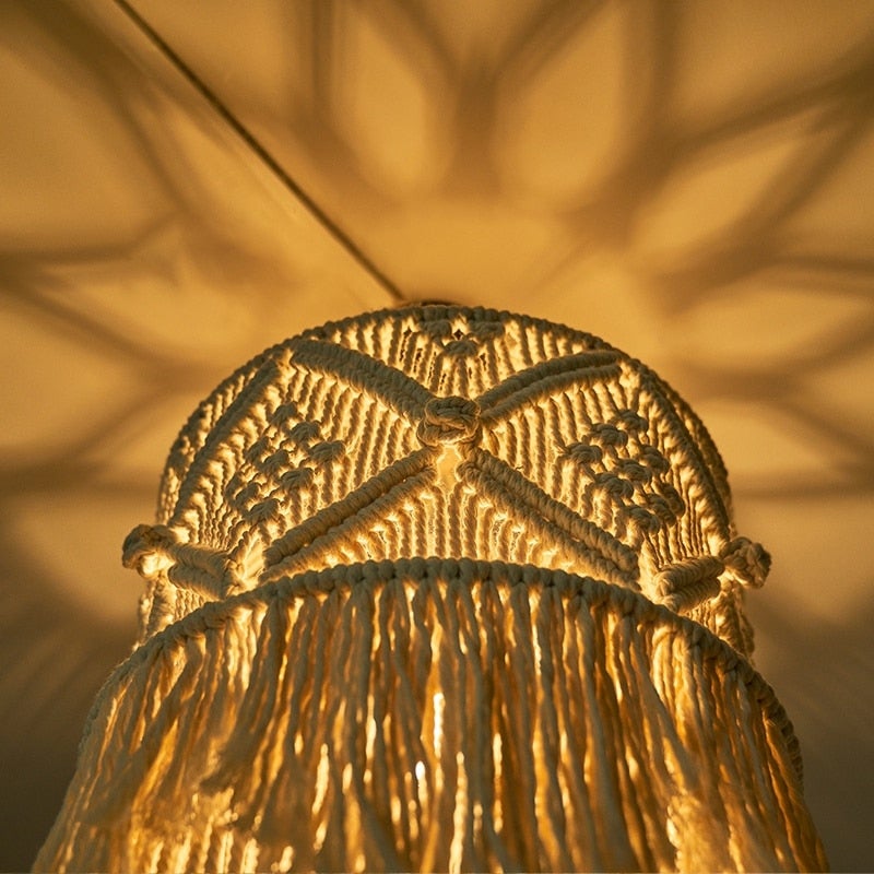 Ajoutez une note douce et bohème à votre décoration avec le macramé abat-jour. Parfait pour créer une lumière tamisée et une ambiance apaisante, son tissage artisanal transforme chaque espace en un cocon chaleureux. Pour enrichir votre univers déco, découvrez notre collection de luminaires en macramé, un ensemble de pièces uniques mêlant authenticité, style et douceur lumineuse.