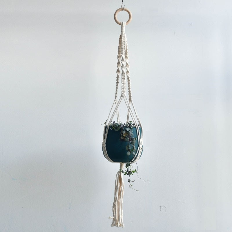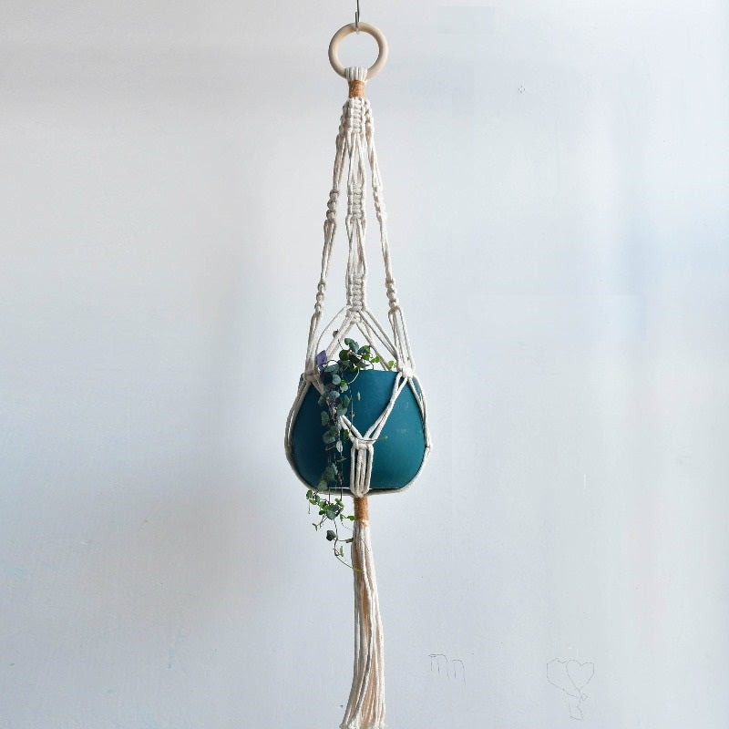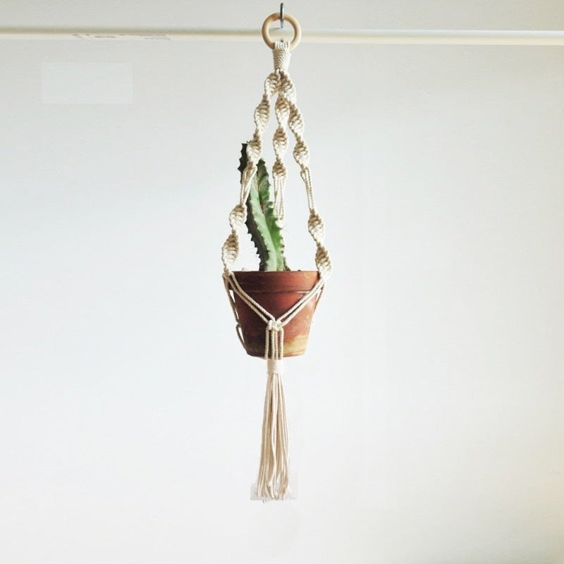 Cette suspension pour plante en macramé est bien plus qu’un simple accessoire décoratif : c’est une façon originale d’apporter du mouvement et du volume à votre décoration. Associez-la à des plantes tombantes comme le lierre ou le pothos pour un effet saisissant !