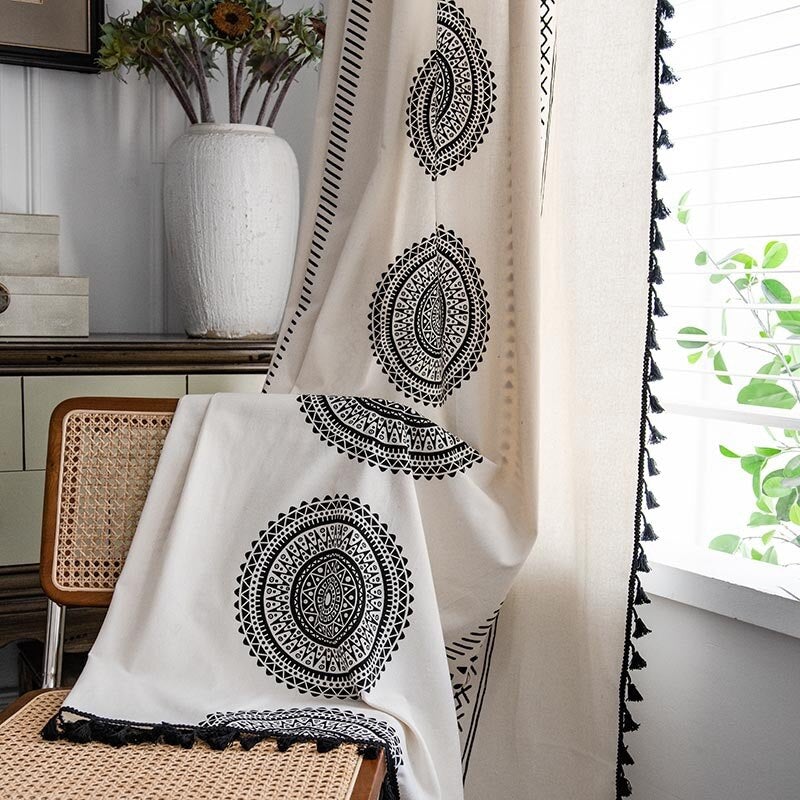 Confectionné à partir d’un mélange de coton et de polyester, ce rideau assure à la fois résistance et douceur. Ses motifs en rosace et ses bandes géométriques apportent du relief et du caractère à votre pièce, tout en conservant une ambiance chaleureuse et apaisante.