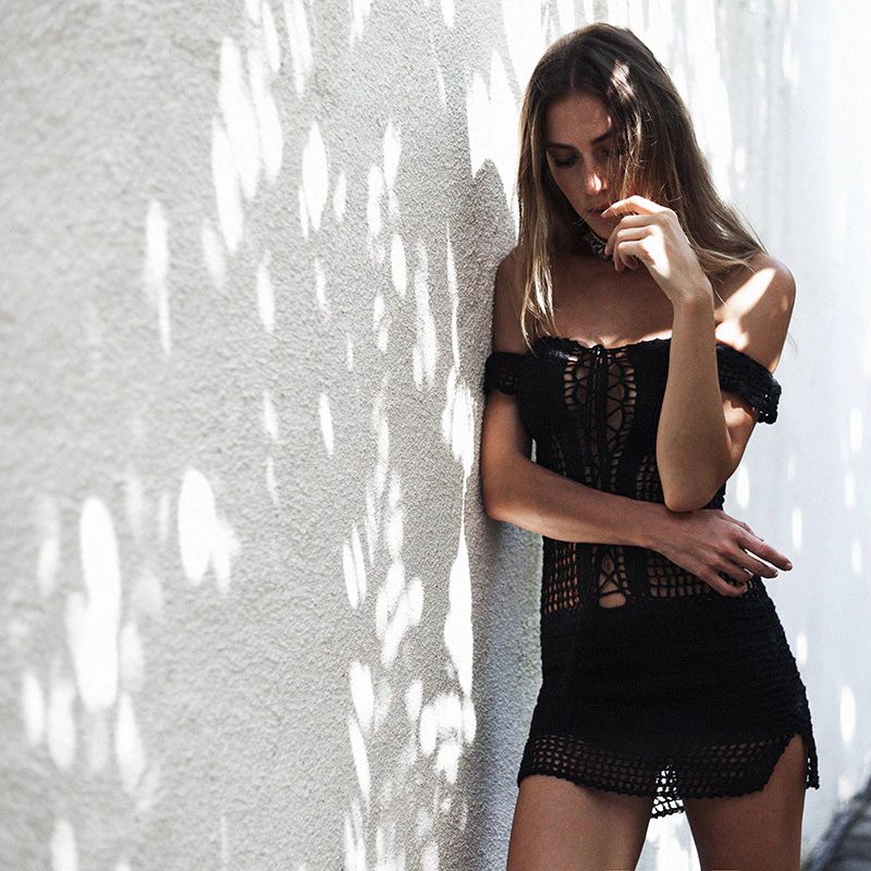 • Structure ajourée en macramé pour une silhouette fluide et aérée.