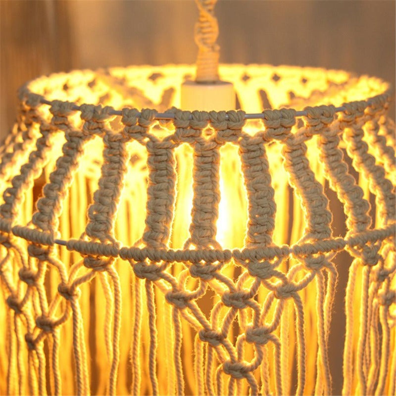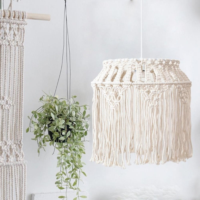Ce macramé luminaire en macramé est fabriqué avec des matériaux de qualité et comporte de longs fils de coton en frange qui peuvent être utilisés, pourquoi pas, pour suspendre quelques perles de bois. La douce lumière qu’il diffuse illumine votre pièce, dégageant un look de quasiment un autre monde, parfait pour n’importe quel décor !