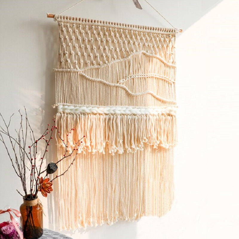 Laissez-vous séduire par cette tenture murale en macramé et créez une atmosphère chaleureuse et apaisante chez vous.